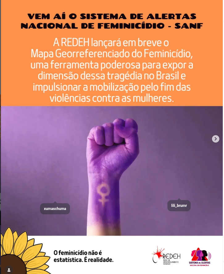 O Mapa Georreferenciado do Feminicídio, desenvolvido pela REDEH, nasce para contribuir para retirar as vítimas da invisibilidade e denunciar a gravidade dessa violência.