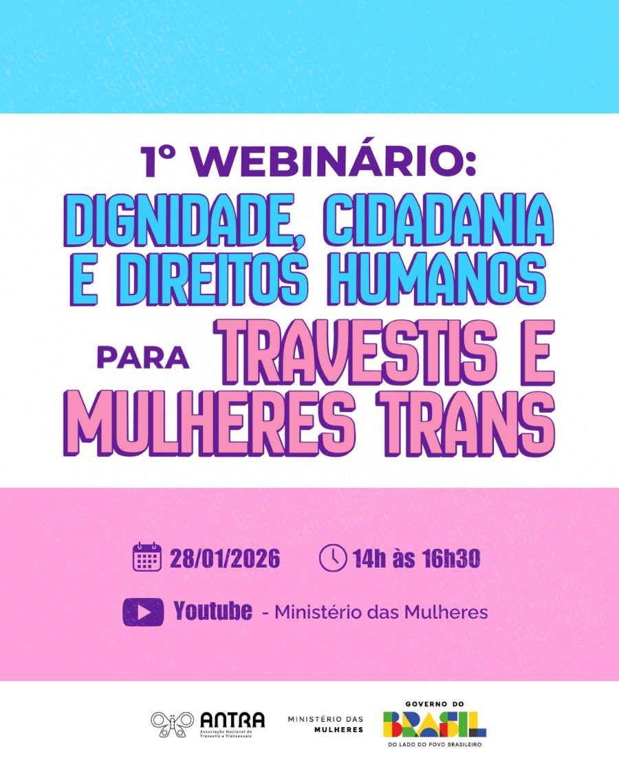 O Ministério das Mulheres em parceria com a Associação Nacional de Travestis e Transexuais (Antra) e a ONU Mulheres realizam o 1° Webinário Dignidade, Cidadania e Direitos Humanos para Travestis e Mulheres Trans, uma ação no âmbito do Acordo de Cooperação Técnica firmado entre o Ministério e a ANTRA.
